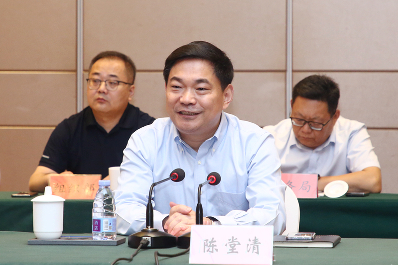 陈堂清在致辞中表示,新沂是江苏的北大门,苏北重要的交通枢纽、新兴的工业和商贸旅游城市,是徐连经济带战略支点、淮海经济区重要开放门户和徐州城市副中心,历史文化底蕴丰厚,交通区位优势明显,产业基础雄厚。近年来,新沂深入贯彻习近平总书记视察江苏、视察徐州重要讲话指示精神,以新发展理念为引领,聚焦高质量发展主线,全面推进中国式现代化新沂新实践。新沂始终坚持“工业立市、产业强市”战略不动摇,一手抓传统产业转型升级,一手抓战略性新兴产业做大做强,一批投资百亿级“链主”企业相继签约落地、开工投产,形成了集群态势,开辟了产业发展新境界。陈堂清指出,新沂热切期待与江苏师范大学深化联系,全面加强在产业发展、科技创新、平台建设、人才培育等方面的合作,推动更多科技成果在新沂转化,增强新沂发展核心竞争力。