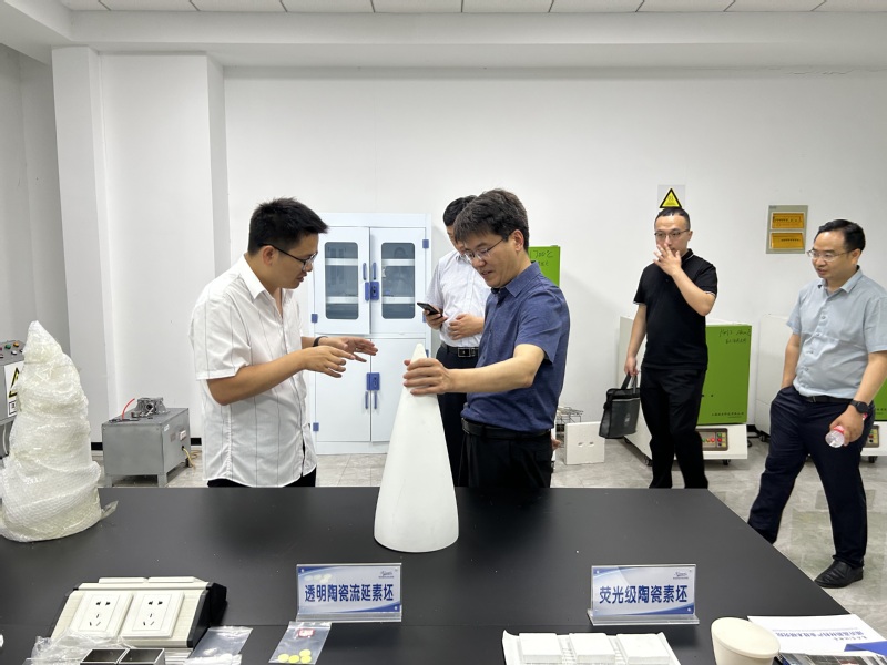 2023年7月26日下午,徐州市科技局秦飞副局长一行来我院参观考察,新沂市科技局胡啸天局长陪同参观,我院功能陶瓷事业部主任邵岑热情接待了到访领导。