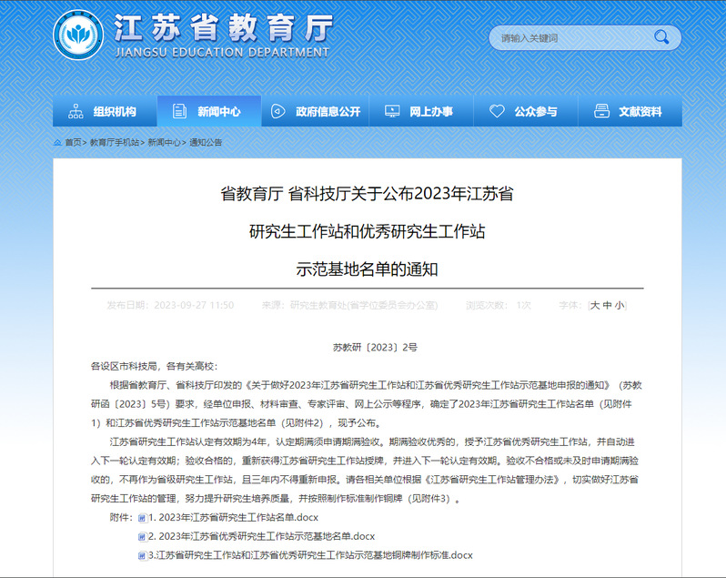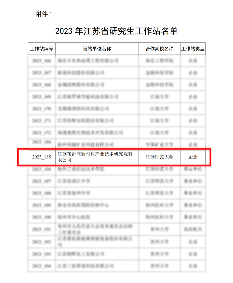 近日,江苏省教育厅、科技厅公布了2023年江苏省研究生工作站和优秀研究生工作站示范基地名单,江苏锡沂高新材料产业技术研究院依托江苏师范大学的支持,成功获批“江苏省研究生工作站”。
