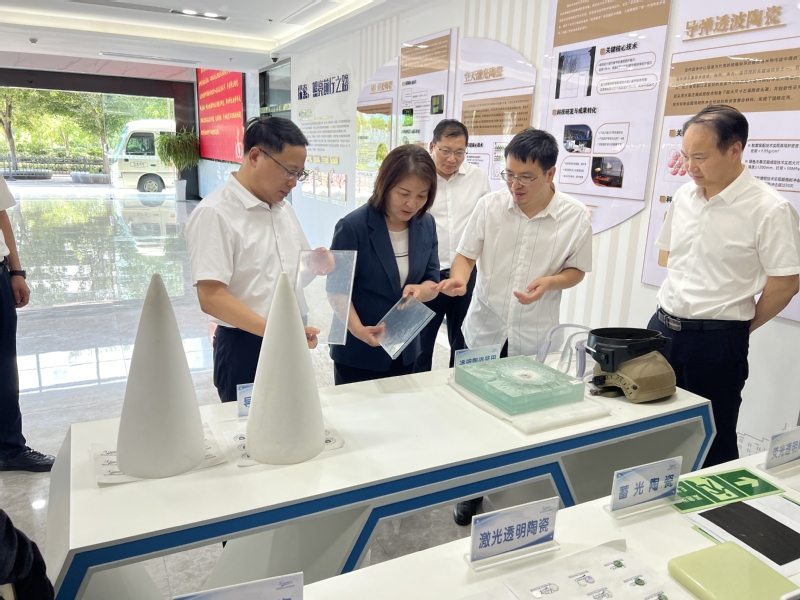 在参观过程中,我院功能陶瓷事业部邵岑主任向郭晓敏市长一行详细介绍了研究院的基本情况、科研团队及主要研究项目。郭晓敏市长对我院在透明装甲陶瓷等方面的创新研究给予了高度评价,并指出新材料产业作为国家大力发展的战略性新兴产业之一,希望企业抢抓发展机遇,坚持以科技创新引领产业创新,加快培育和发展新质生产力,不断增强企业核心竞争力、市场竞争力。